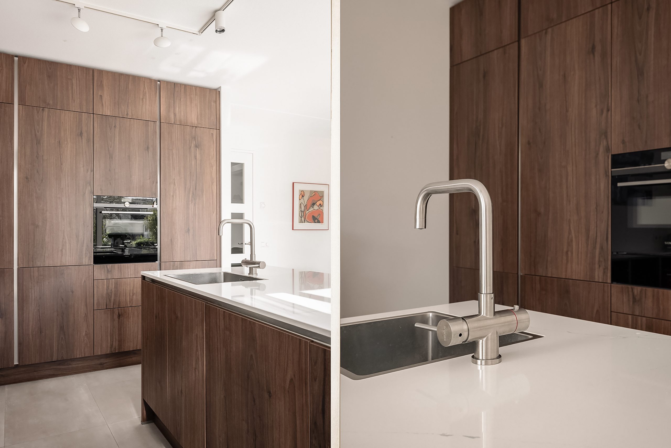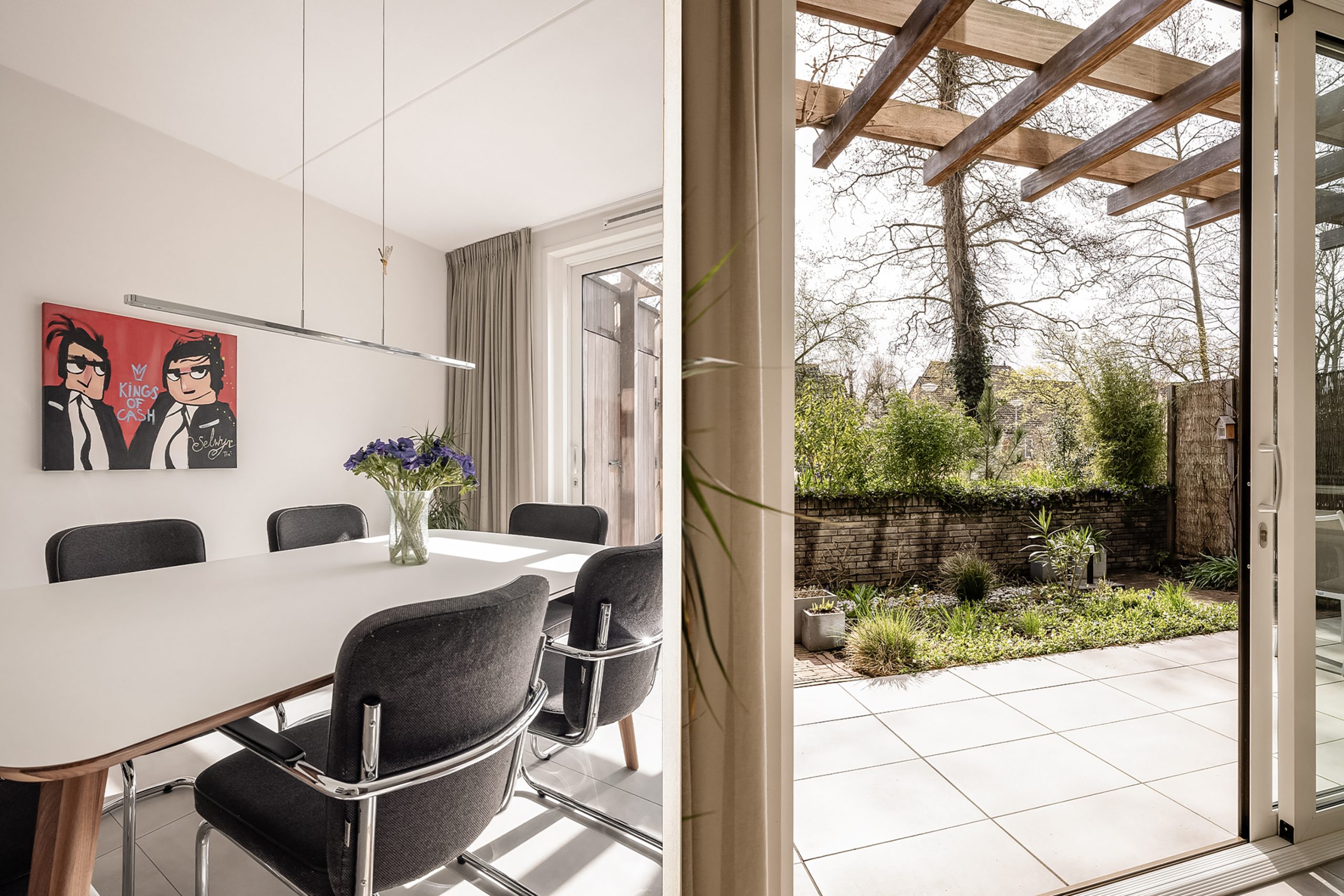 Stap binnen in de lichte, ruime hal met garderobe en modern zwevend toilet. De grote berging, bereikbaar vanaf binnen én buiten, biedt alles voor veilig en praktisch opbergen van fietsen of spullen. Aan de voorzijde vind je een flexibele werk- of slaapkamer, perfect voor thuiswerken, logees of een speelkamer. Aan de tuinzijde ligt de luxe woonkeuken, volledig uitgerust met topapparatuur, een Selsiuz heet water kraan en multifunctionele oven met bordenwarmer. Open de grote achterpui en ervaar direct de verbinding met de tuin: binnen en buiten vloeien hier moeiteloos in elkaar over.