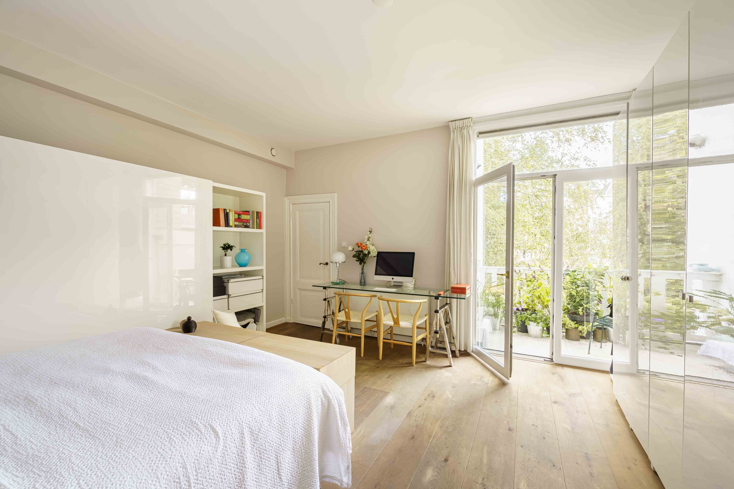 Dit charmante en lichte appartement van ca. 69 m² op eigen grond ligt op een van de meest geliefde plekken van Amsterdam. In 2007 is het gebouw grondig gerenoveerd en gesplitst, waarbij de authentieke details behouden zijn en gecombineerd met hedendaags wooncomfort. Hoge plafonds en klassieke en suite paneeldeuren geven de woning karakter, terwijl de open indeling zorgt voor een natuurlijke overgang tussen woonkamer en keuken. Aan de achterzijde ligt de royale slaapkamer, ruim genoeg voor een groot bed, kledingkast én een werkplek, met toegang tot een balkon dat uitkijkt over groene binnentuinen en karakteristieke gevels. Het echte hoogtepunt is de ligging: pal aan het charmante Amstelveld, met de populaire Utrechtsestraat, de Amstel, de Magere Brug en Theater Carré om de hoek. Vanuit de woonkamer kijk je uit over het levendige plein, met Brasserie Nel en Café Marcella als je ‘voortuin’. En elke maandag kleurt de bloemenmarkt de omgeving extra gezellig.